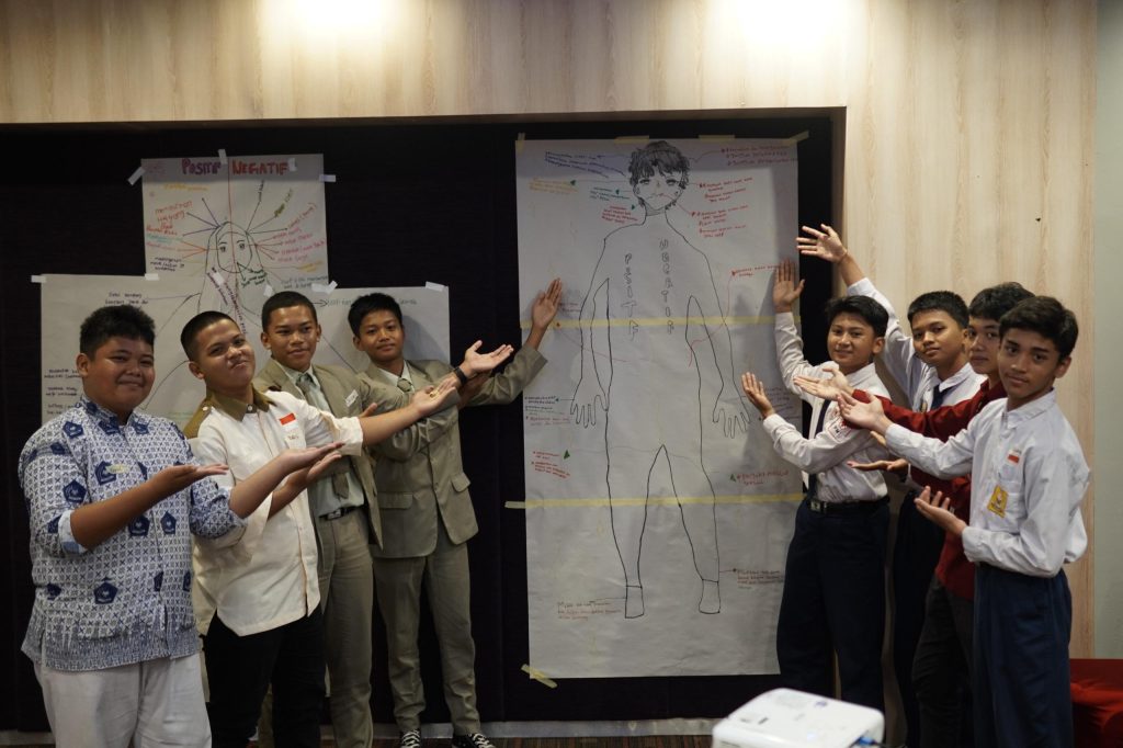 Setelah istirahat, peserta mengikuti diskusi kelompok yang menjadi sesi paling interaktif. Mereka dibagi menjadi dua kelompok putra dan putri, untuk membuat body mapping tentang dampak positif dan negatif internet dalam kehidupan sehari-hari. Hasil diskusi dipresentasikan kembali, menghadirkan banyak perspektif baru tentang dinamika pergaulan digital remaja di Mataram. Sebagai penutup, peserta bersama fasilitator menyusun Rencana Tindak Lanjut (RTL) untuk memperkuat literasi digital dan perlindungan anak di sekolah masing-masing. Beberapa ide yang muncul antara lain pembentukan komunitas dampingan dari peserta kegiatan ini serta kampanye penggunaan internet sehat.